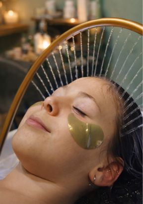 Ritual sensorial que combina aromaterapia, masaje craneofacial, vaporización capilar y pediluvio aromático con masaje de pies.